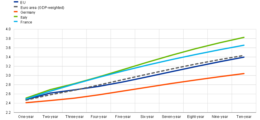 Notes: The chart shows the term structure of spot rates across euro area countries and EU bonds. The latest observations are for 16 April 2026.