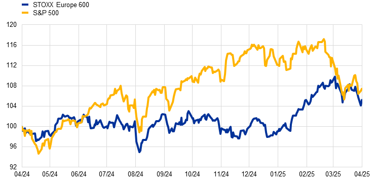Im vorliegenden Kasten wird erörtert, wie sich die von den Vereinigten Staaten nach dem Redaktionsschluss dieses Jahresberichts verhängten umfangreichen Handelsbeschränkungen auf die Finanzstabilität auswirken. Dabei wird der Zeitraum vom 1. April bis zum 31. Mai 2025 berücksichtigt.
